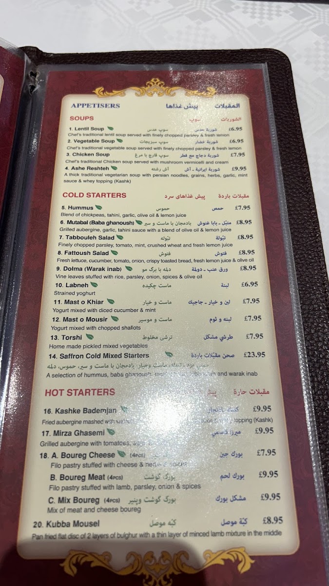 Welcome to Saffron Restaurant, nestled at 39 Upper Berkeley St in London, where culinary excellence meets warm hospitality. This Middle Eastern eatery stands out for its vibrant atmosphere and exceptional service.